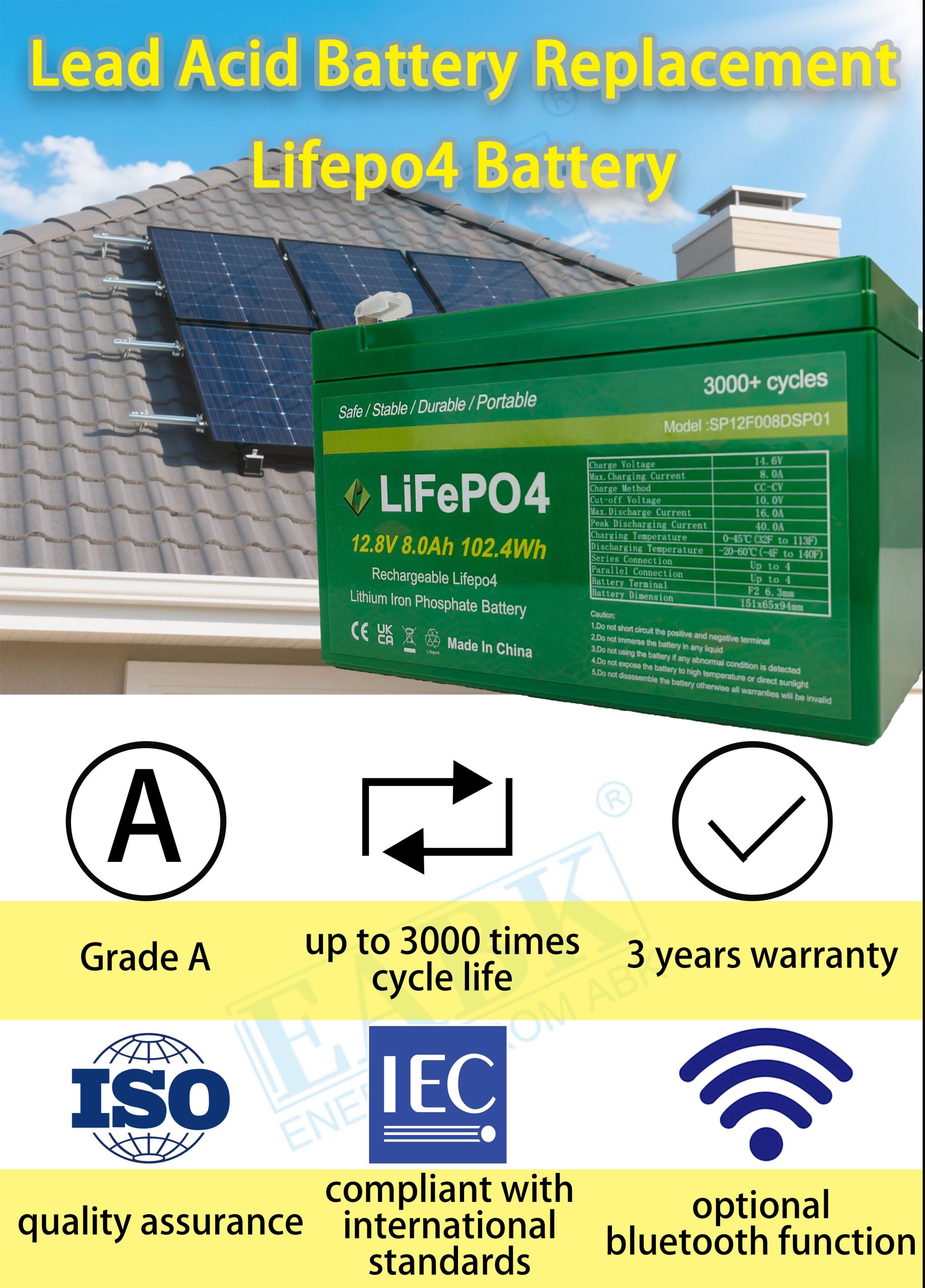 Excellent cycle life. More than 3000 cycle times and there is a 3-year warranty